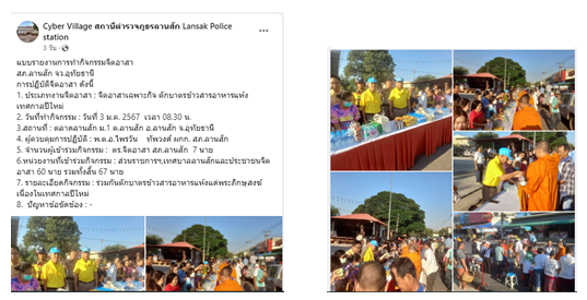 วันที่ 3 ม.ค. 2567 เวลา 08.30 น. ตร.จิตอาสา สภ.ลานสัก 7 นาย ส่วนราชการฯ,เทศบาลลานสักและประชาชนจิตอาสา 60 นาย รวมทั้งสิ้น 67 นาย ร่วมกันตักบาตรข้าวสารอาหารแห้งแด่พระภิกษุสงฆ์ เนื่องในเทศกาลปีใหม่