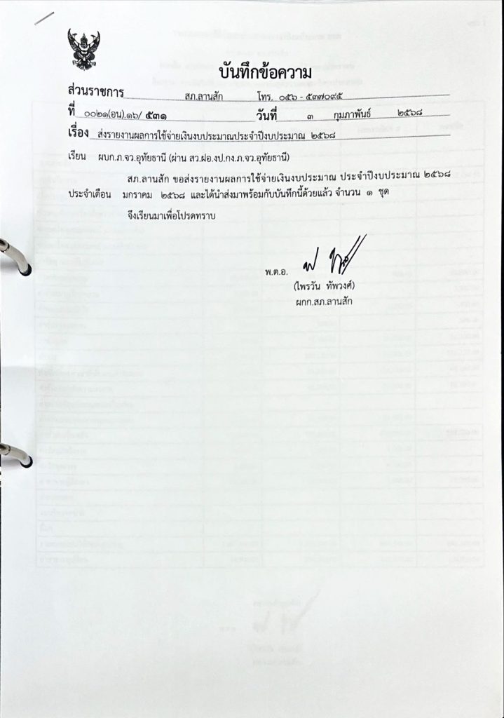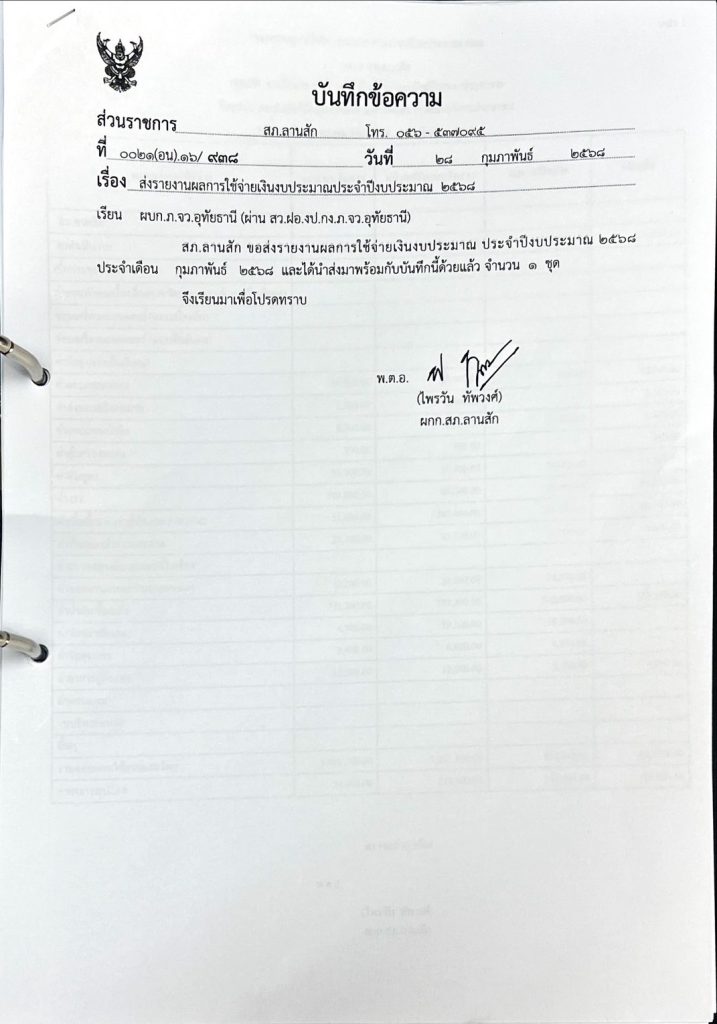 รายงานผลการใช้จ่ายงบประมาณประจำปี งบประมาณ 2568